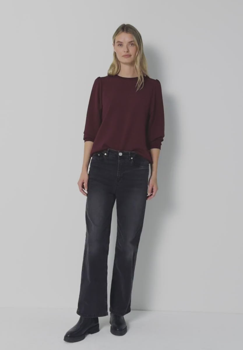Cecil silk look soft top with baby puff shoulders and Drawstring waist 324297