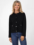 in a classic black, it features a classic collar, button-down front, and chic patch pockets with subtle gold button accents. Crafted from a textured knit, it offers both comfort and polish, making it perfect for work or weekend wear.
