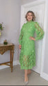 Get ready to stun in our Amber Lace Midi Dress! This beautiful dress features a stretch lace fabric, half lining with soft jersey, and delicate scallop detailing on the neck and cuffs. With sheer sleeves, this dress is both elegant and playful. A must-have for any occasion! Also available in Navy red black magenta and lime
