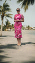• Stunning pink dress with 3D embroidered flowers in multi colours