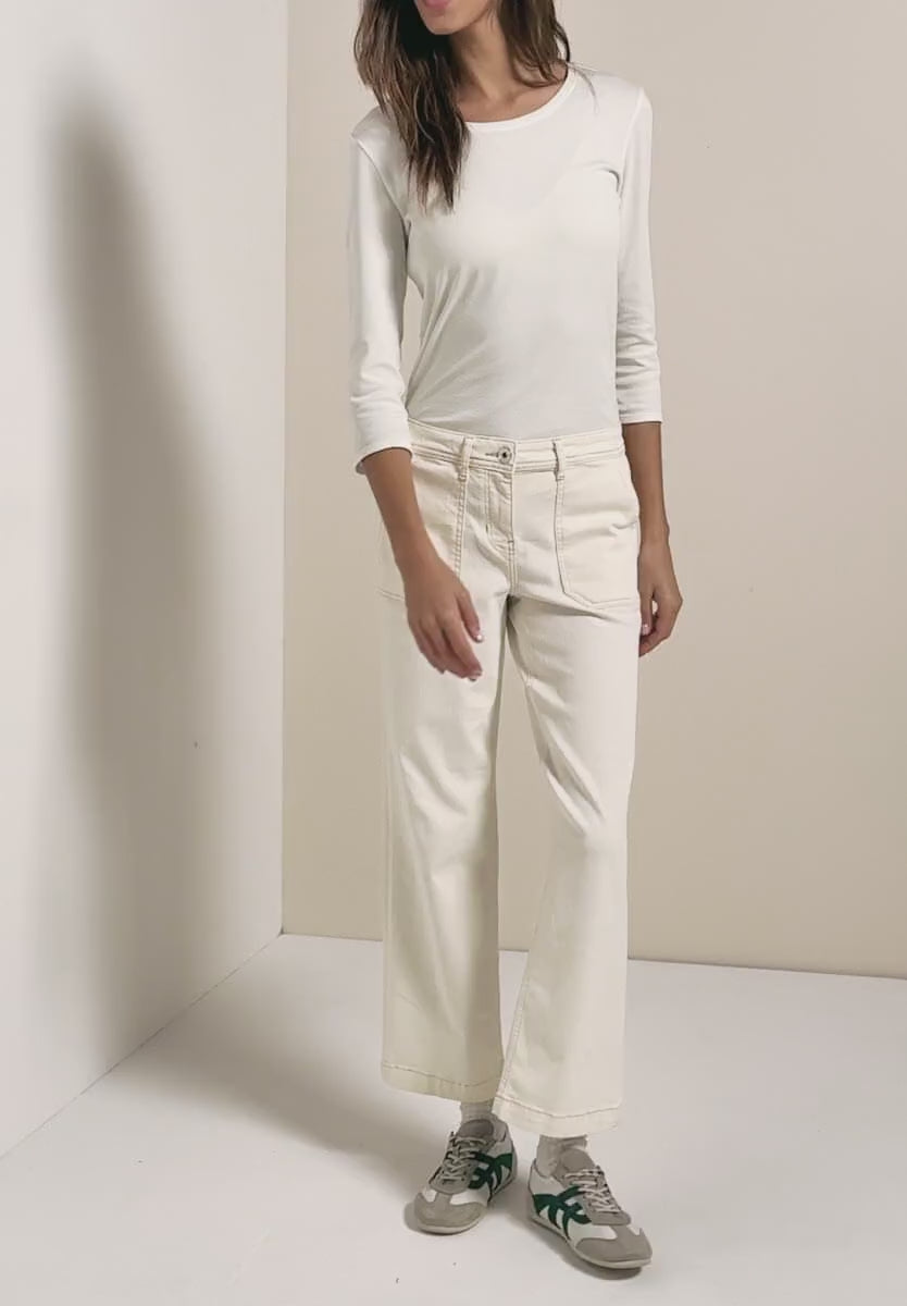 The Neele style patch pocket jeans from CECIL for women bring a relaxed silhouette to your wardrobe with their loose fit, wide legs, and high waist. The ecru wash gives the look a light and airy feel, while side pockets add practicality. Thanks to the soft cotton blend with added stretch, they are exceptionally comfortable to wear.