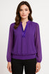 Elevate your wardrobe with this chic deep purple blouse, designed with a touch of sparkle for day-to-night versatility. Featuring a flattering V-neckline with silver sequin trim, this blouse brings understated glamour to your look. The long sleeves with elasticated cuffs and a softly gathered hemline ensure a comfortable fit with a refined silhouette. Perfect for pairing with tailored trousers or jeans, this blouse is a timeless piece that transitions effortlessly from office to evening.