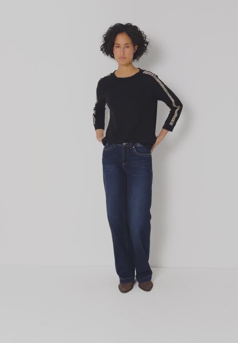 This women's long-sleeved shirt from Street One adds a stylish touch with its leopard-print side stripes. The classic round neck and small side slits ensure a casual fit. The soft jersey fabric completes the shirt as a comfortable fashion piece.