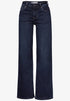 The wide leg jeans in loose fit from Street One for women are a fashion statement with a mid waist and wide cut legs. The dark blue denim wash and the 5-pocket style make them particularly versatile. Perfect for trendy and casual outfits.