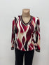 Yew Top with sporty Ribbed V Neck in Burgundy and black Wave print Yew25 64