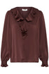 Byoung Satin V Neck Blouse with frill detail in Black or Fudge 20815848