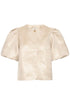 The Byoung Dariella jacket in gold textured fabric brings playful elegance with its altered puff sleeves and classic round neck. Fully lined and featuring a concealed popper closure, this dressy piece pairs beautifully with cream wide-leg trousers for a chic, standout look.