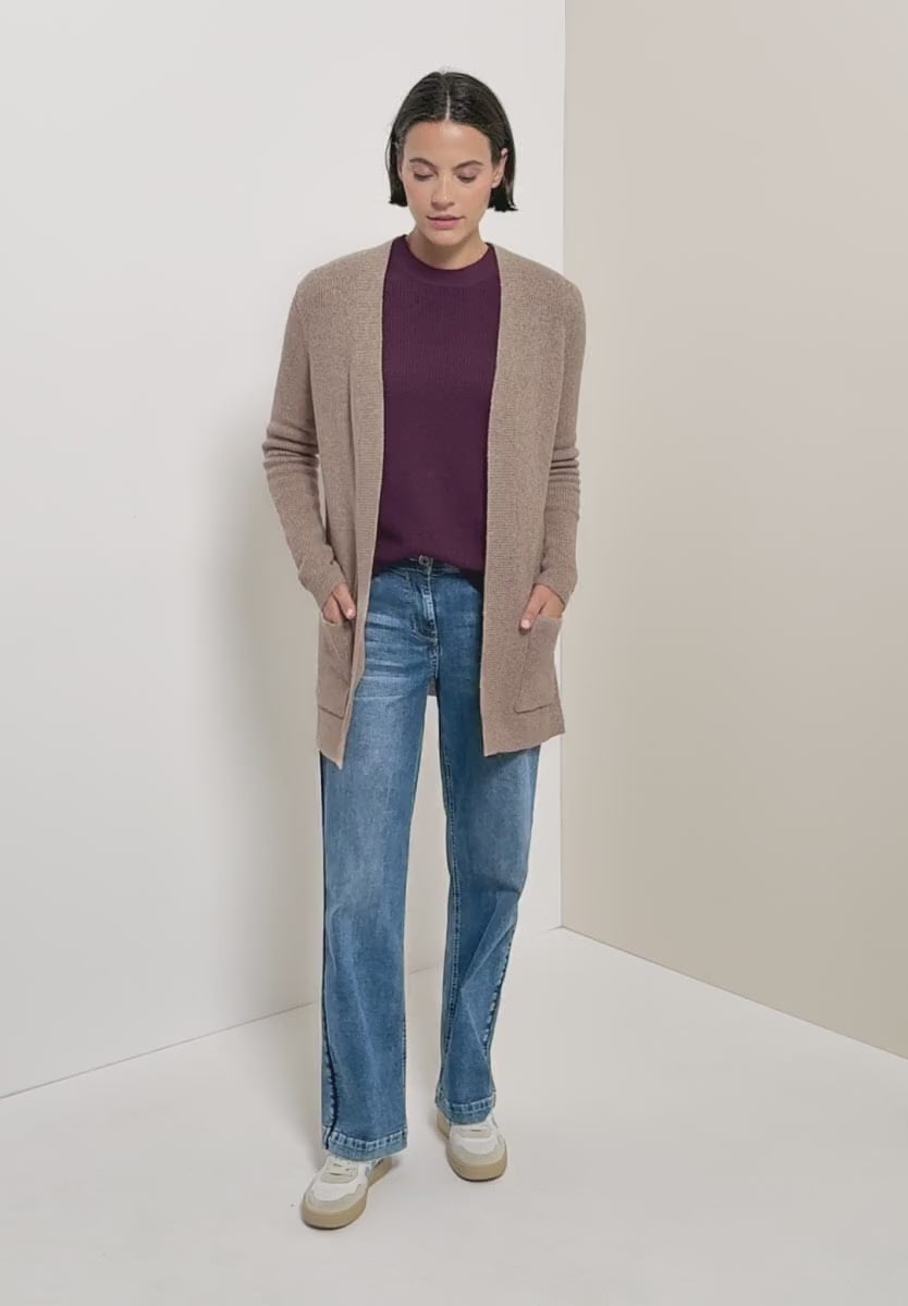 This is a gorgeous soft longer length Cardigan in a fab Toffee Cram Colour, the perfect extra layer for all your Brown and Earth tones this season. This open cardigan from CECIL for women impresses with its fine texture and casual cut. Patch pockets and a soft cotton blend with stretch make it a comfortable layering piece. A simple companion for cosy looks.