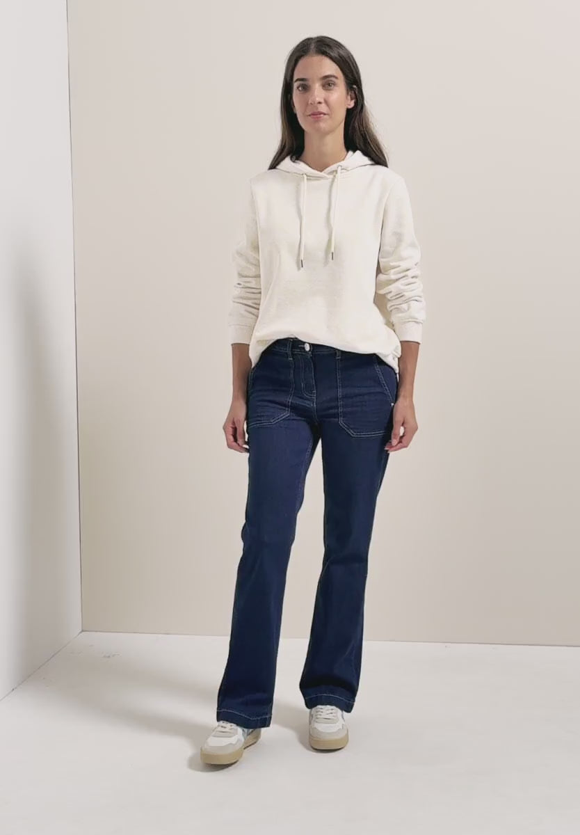 CECIL's Toronto bootcut jeans for women feature a figure-hugging slim fit, high waist, and fashionable bootcut legs. The clean rinsed look gives the denim an elegant touch, while the 5-pocket style adds classic charm. The stretch content in the cotton blend ensures comfortable wear.