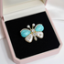 Boxed Butterfly Brooch with turquoise and Mother of Pearl detail