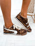 Elevate your style with our Leo Trainer - featuring a leopard print design and a statement white fabric swirl. Not only does it add a touch of sophistication to your outfit, but its cream interior also provides maximum comfort with a soft padded footbed Perfect for those who want to make a statement with their footwear.