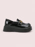 Step into autumn with the Marco Chunky Wedge Loafer in sleek black patent. Designed for comfort, its padded footbed cushions every step, while the platform wedge adds a playful lift to your look. Perfect for transitioning seasons, these loafers blend style and ease effortlessly.