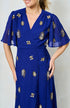 Hope and Ivy Marion Embellished Flutter Sleeve Maxi Wrap Dress with Tie Waist in Cobalt blue