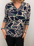 Ilona zip top in Navy beige and green print Zip25 4