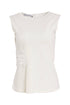 Kate Cooper has taken a classic round neck, sleeveless top and amped up the drama. A satin gathered panel has been applied but only to one side. This delicate design feature works to cinch in the waist and elevate its status.