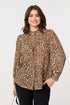 Update your blouse collection with this leopard print loose fitting top. With a high round neck, long sleeves, a metallic foil print detail and a hip length fit. Style with tailored trousers and kitten heels for work