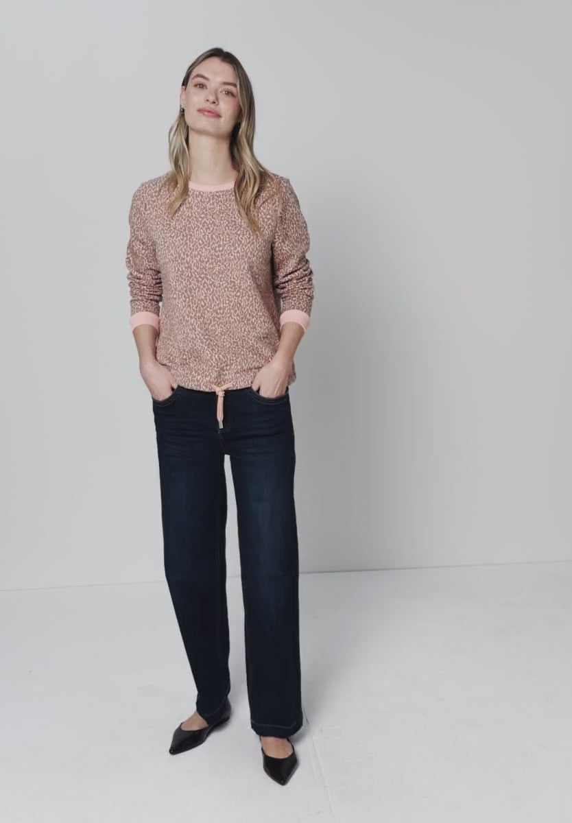 The Leo sweatshirt from Street One for women adds a special touch to your look with its fashionable animal print in a beautiful apricot and beige print The classic and comfortable cut makes it the ideal everyday companion, while the soft cotton blend ensures pleasant comfort.